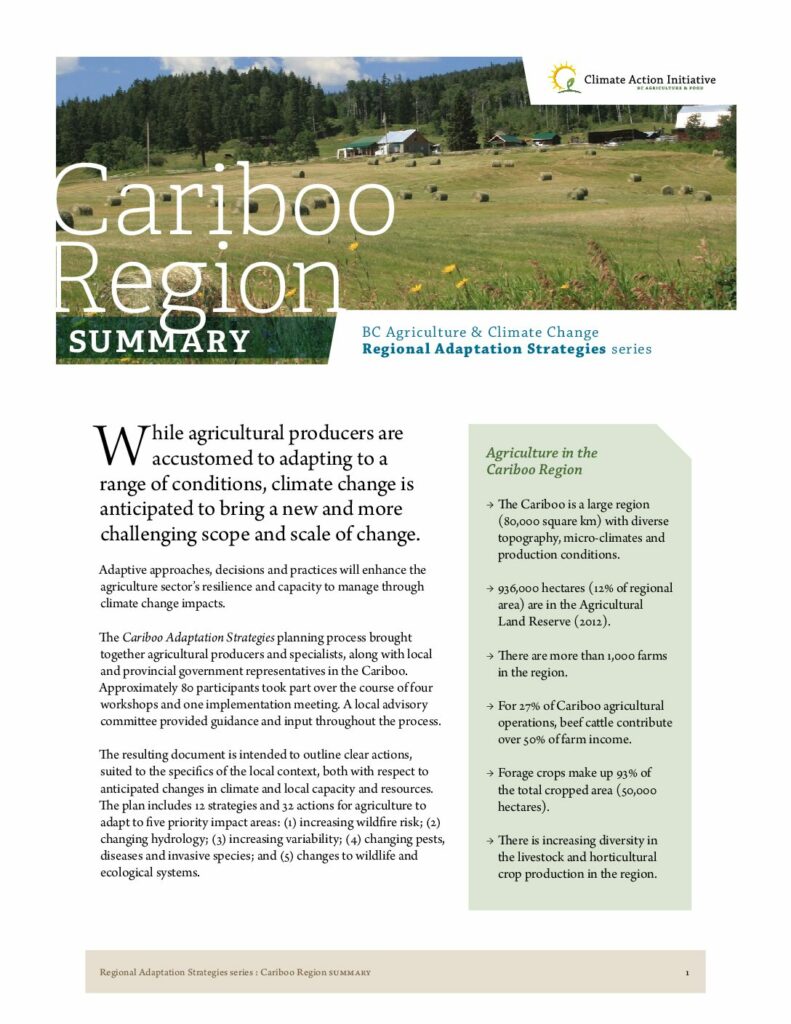 The 2014 Cariboo Adaptation Strategies plan identifies 12 strategies and 26 actions for adapting to priority climate issues affecting.