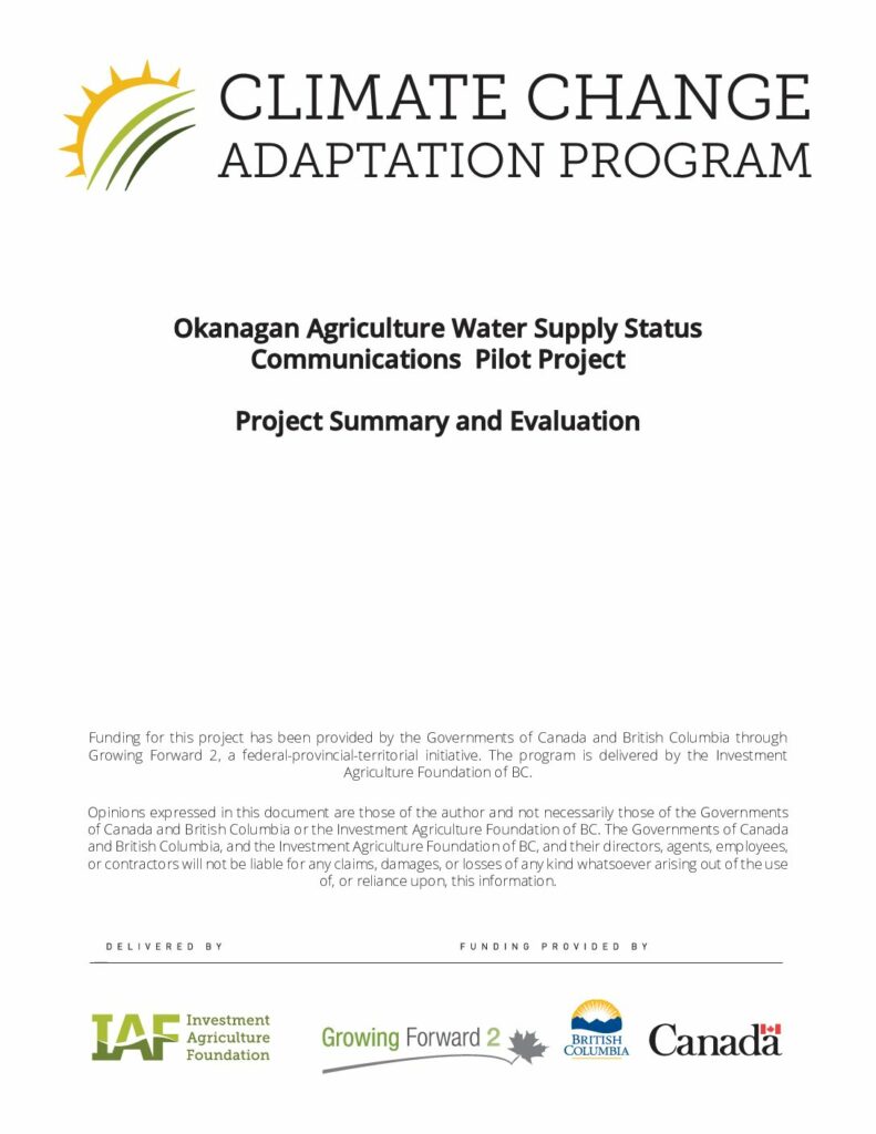A pilot project tested communications materials for improving the transfer of data-driven and timely information about water supply to Okanagan producers.
