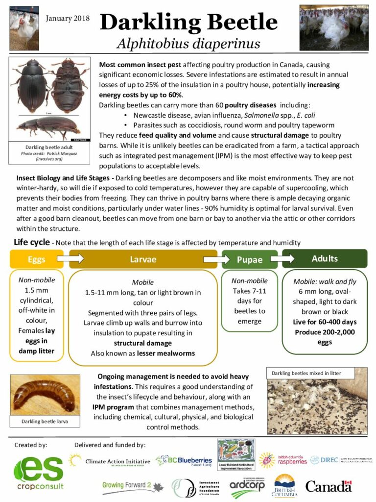 The darkling beetle is the most common insect pest affecting poultry production in Canada.
