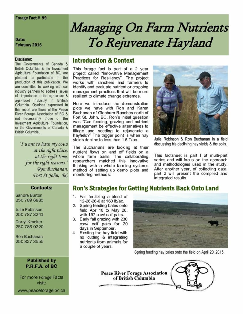 The summary was developed during a project with ranchers in the Peace region. The project identified nutrient or cropping management practices that could improve the resilience of forage production to climate change extremes.