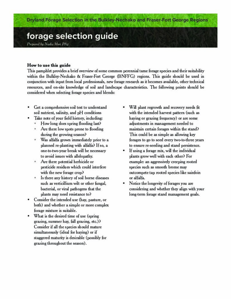 This project included surveys and interviews to develop of a baseline understanding of the current species and varieties being grown in various parts of the region, along with future plans for seeding. Additional research was conducted via outreach to seed companies about new varieties that may be suitable for the dryland production within the region/sub-regions. Existing resources for crop selection were also reviewed, including the BC Rangeland Seeding Manual and the more recently developed Forage U-Pick decision support tool which aids producers with choosing suitable crops.