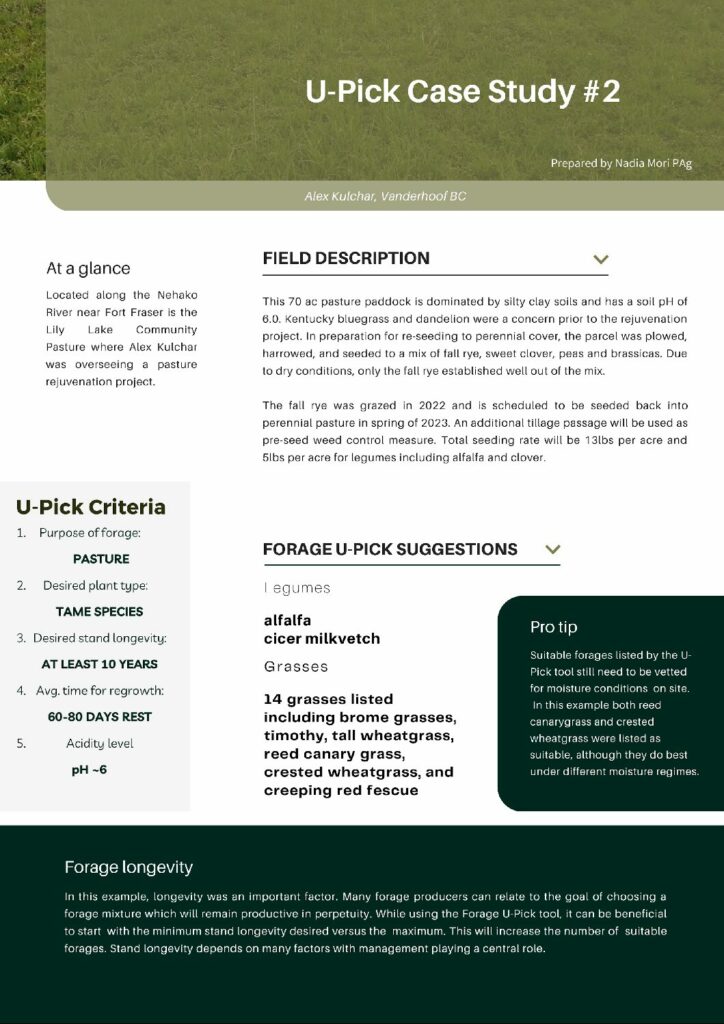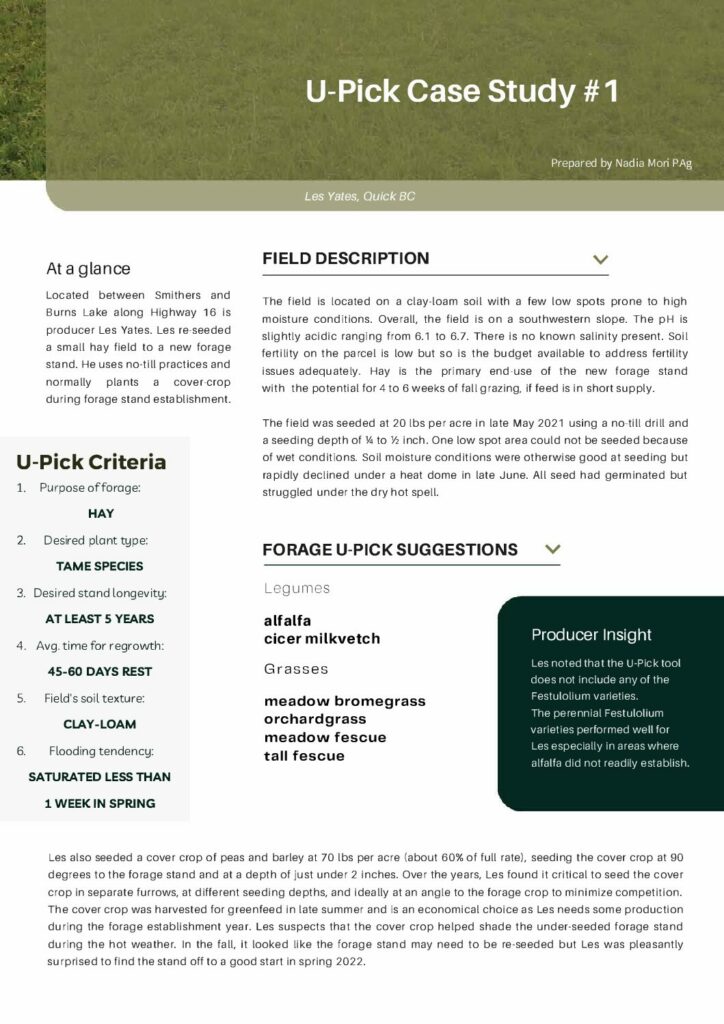 - Evaluate and share the U-Pick forage (decision support tool) within the region