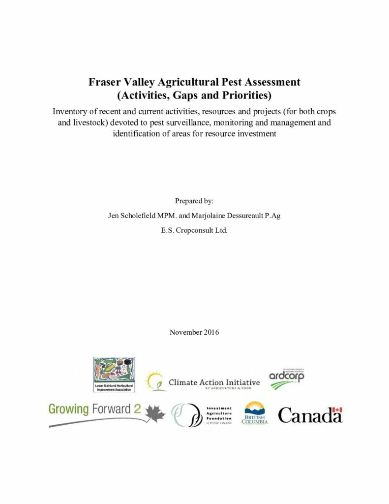 This pest inventory provides an assessment of pest threats to agriculture in the Fraser Valley.