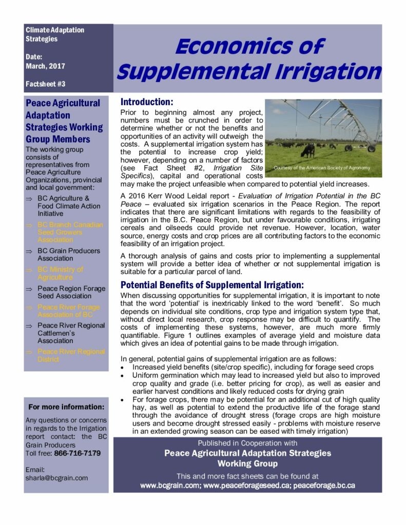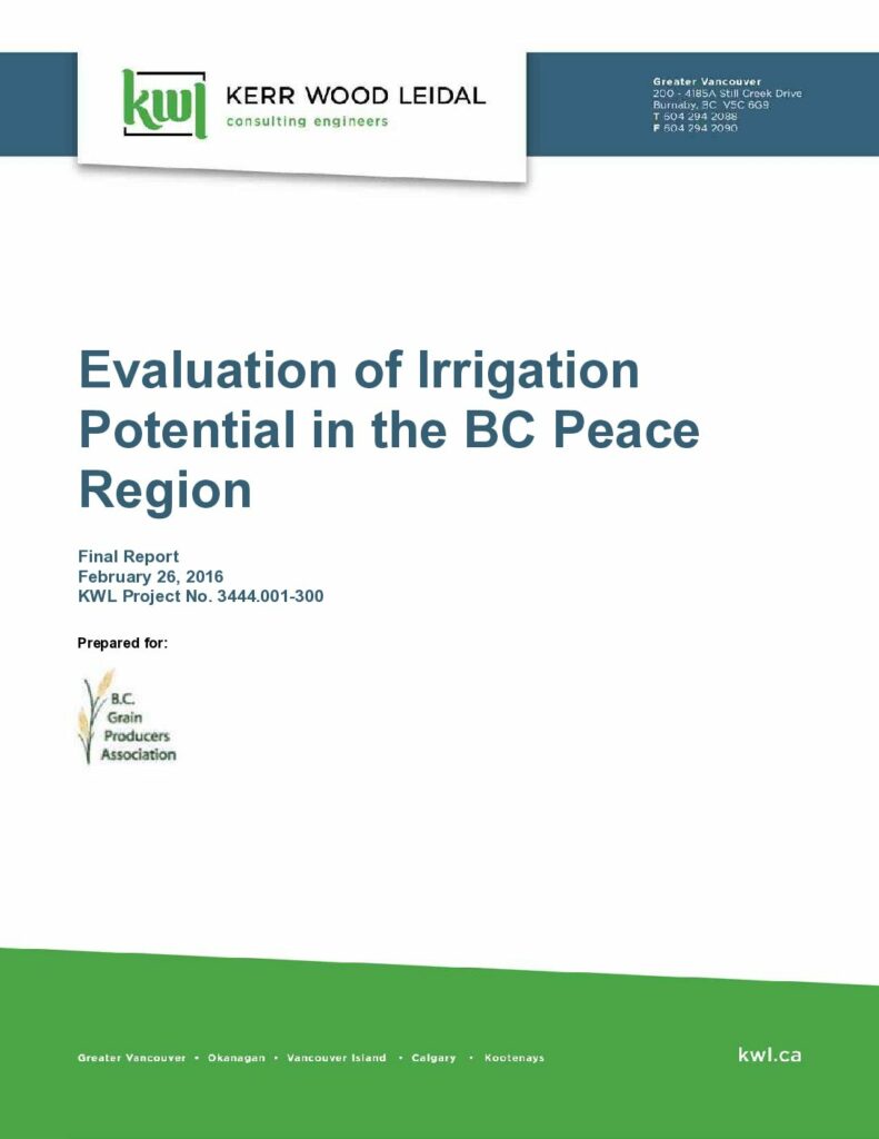 These resources document the results of a 2016 irrigation feasibility study for the Peace region.