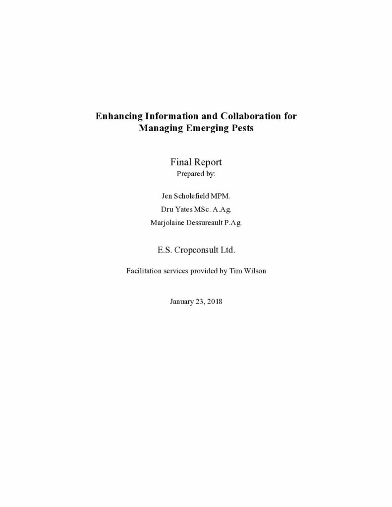 The 2017 report analyzes the results of a 2016 pest inventory, identifying key areas for future attention and investment. It includes both emerging pest threats and established pests.