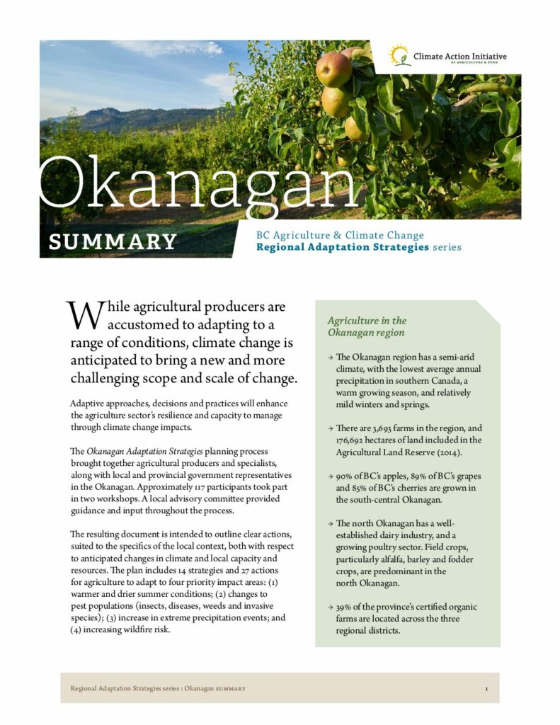 The 2016 Okanagan Adaptation Strategies plan identifies 14 strategies and 27 actions for adapting to priority climate issues affecting.