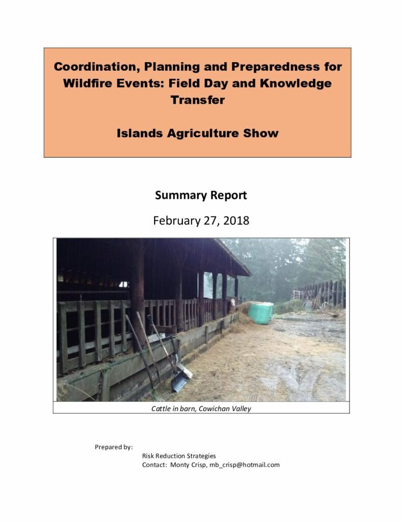 This report details a wildfire-focused field day and panel held for Vancouver Island producers, hosted through the 2018 Islands Agriculture Show.