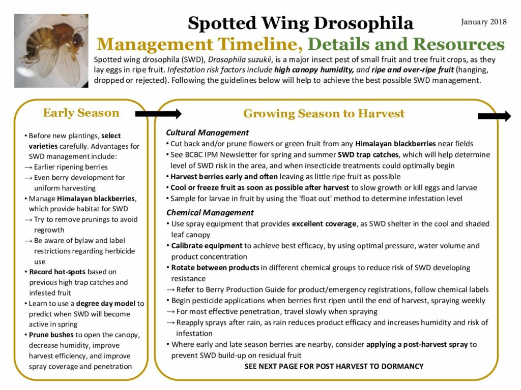 Spotted wing drosophila (SWD) is an insect pest of major concern for small fruit and tree fruit crops.