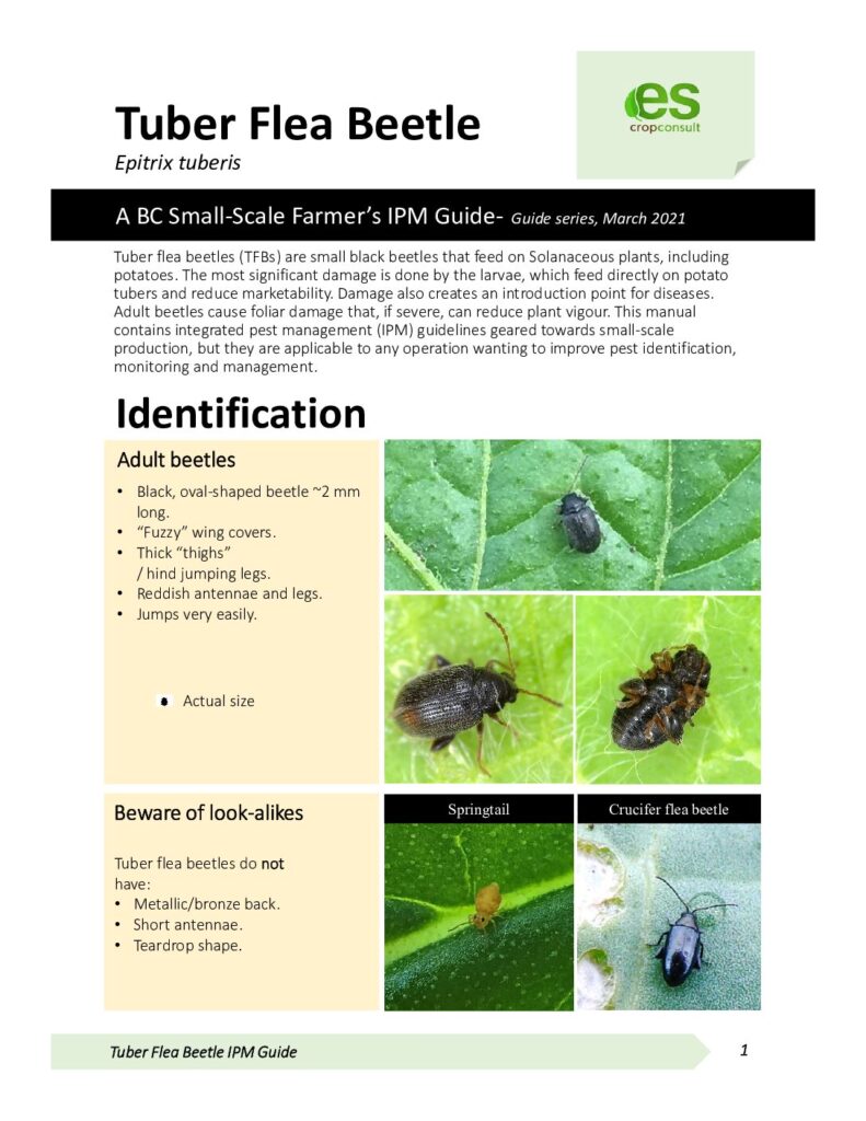 Tuber flea beetles (TFBs) are small black beetles that feed on Solanaceous plants, including potatoes. The most significant damage is done by the larvae, which feed directly on potato tubers and reduce marketability.