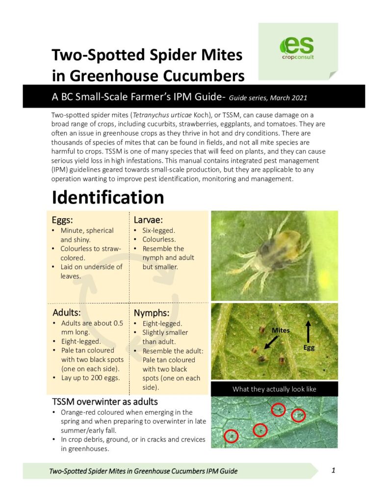 Two-spotted spider mites (TSSM; Tetranychus urticae Koch) can cause damage on a range of crops, including cucurbits, strawberries, eggplants and tomatoes. They are often an issue in greenhouse crops as they thrive in hot and dry conditions.