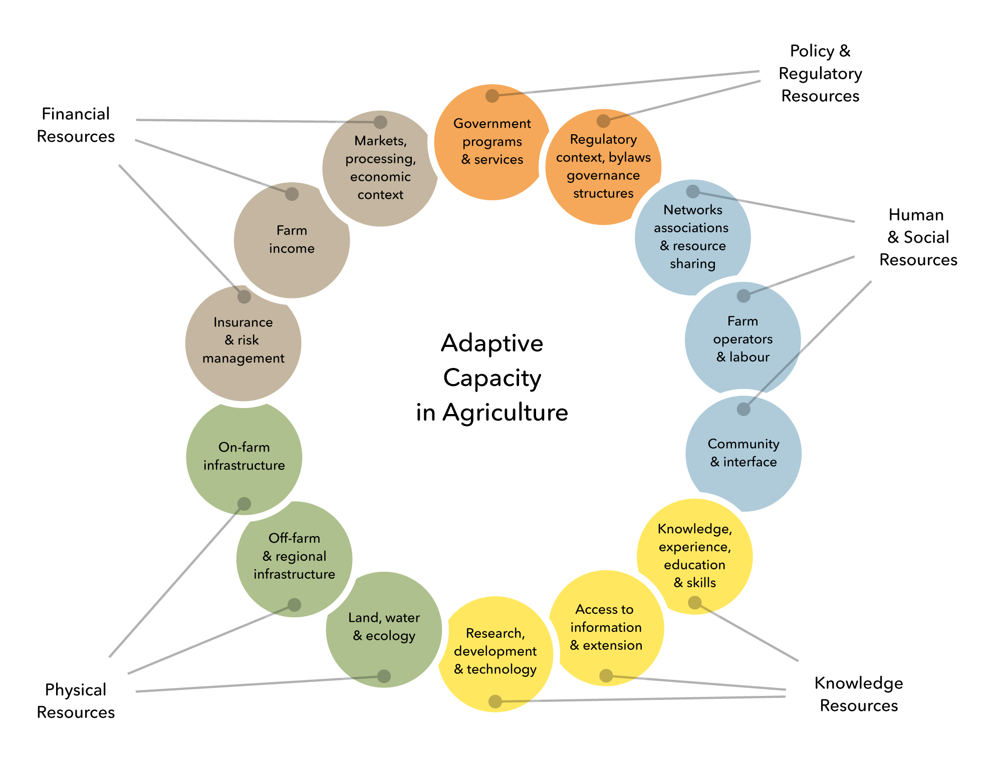 Factors that impact the ability of agriculture to adapt can be grouped into five interrelated resource types: