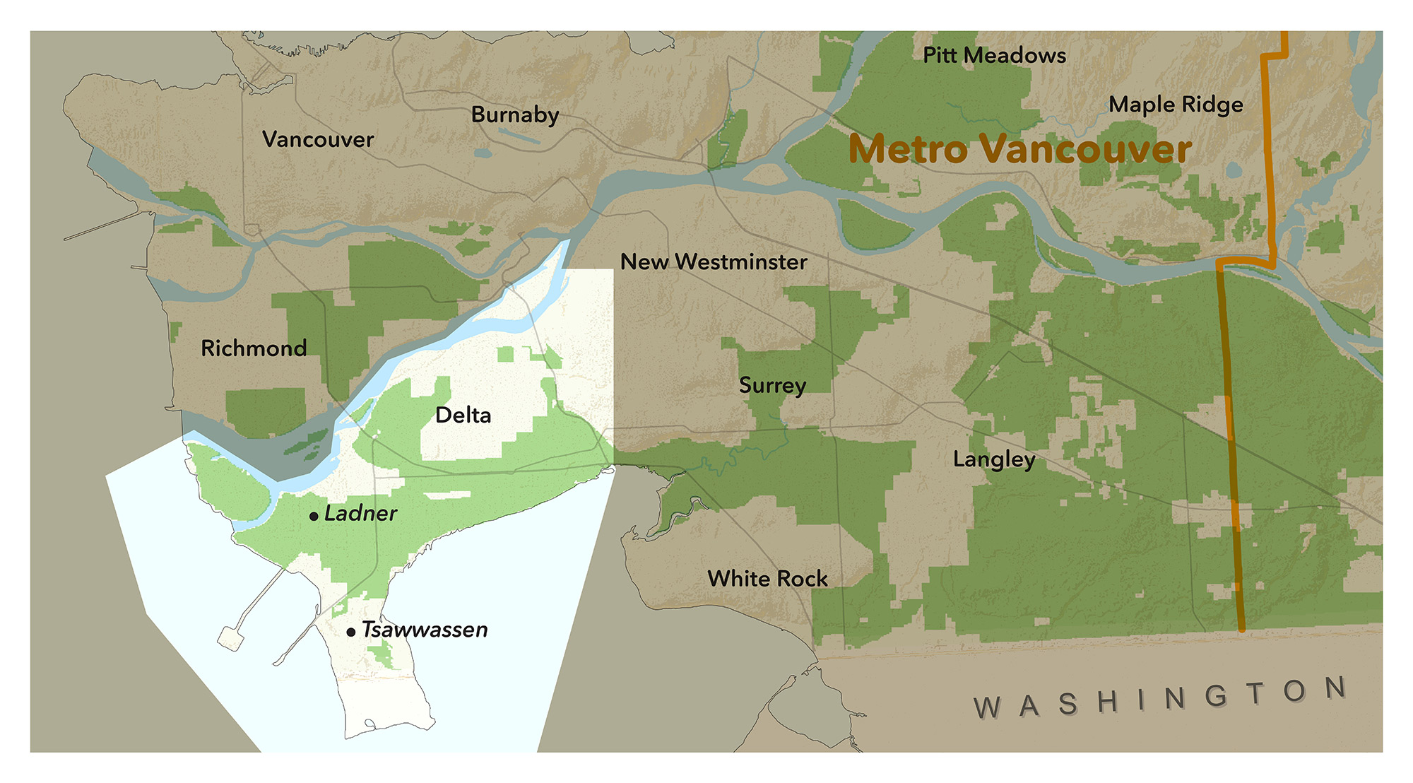 Most of Delta’s agricultural lands are less than 2 metres above sea level. This means they are at much greater risk of flooding than residential areas at higher elevations, such as Tsawwassen and North Delta.